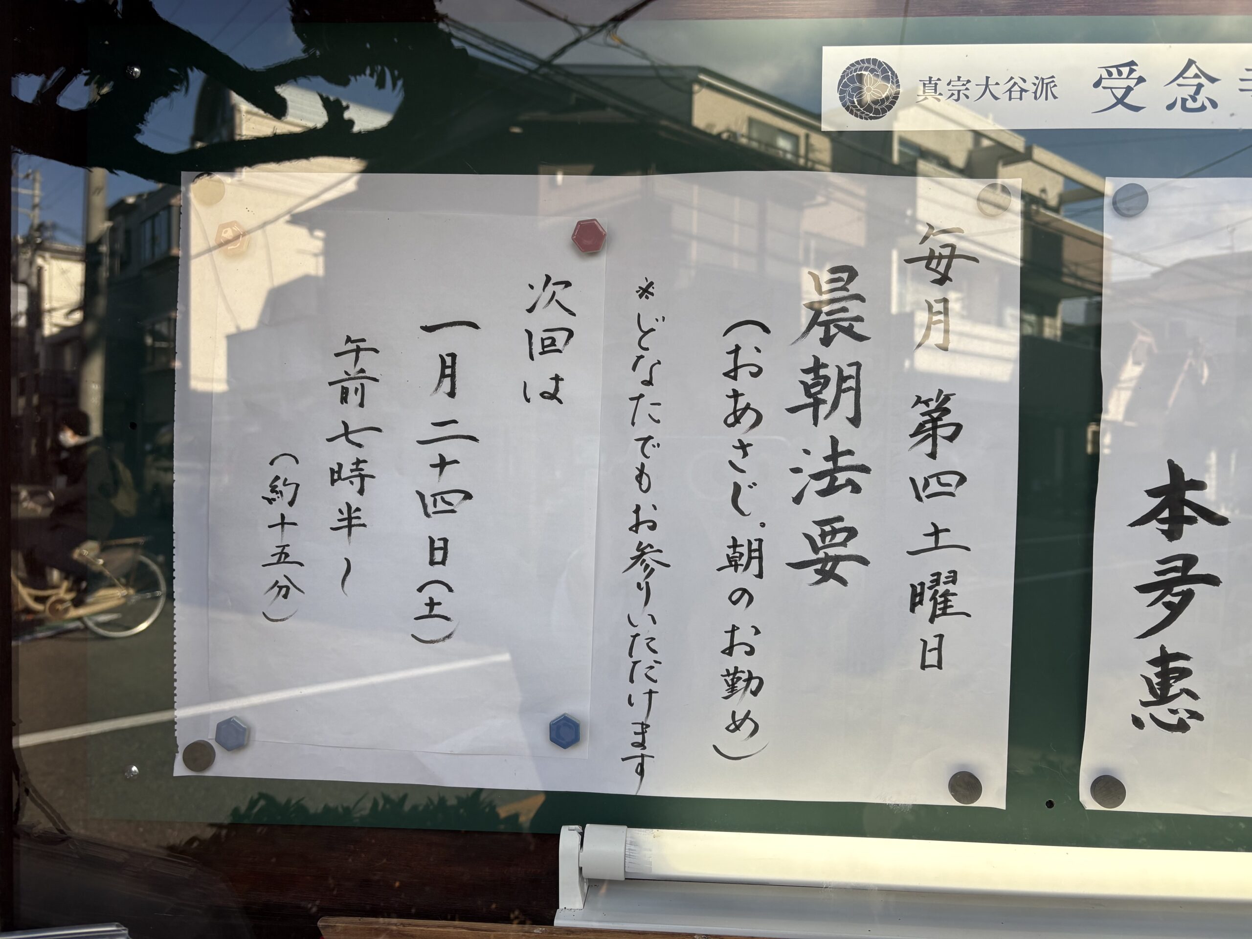 未分類2026.01.23晨朝法要(おあさじ)のお知らせ ポスト シェア はてブ 送る Pocket 受念寺では、1月から第4土曜日・午前7時半から、晨朝法要(おあさじ)を行います。 明日1月24日(土)が初回です。 普段の生活の軸として、どなたでもお参りください。
